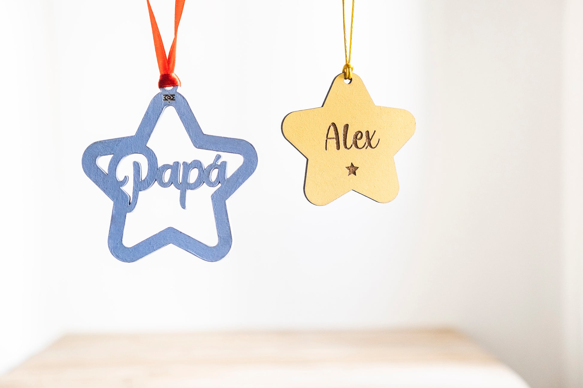 Una selección de las bolas clásicas en tamaño peque para que elijas o combines entre ellas. Son perfectas para esos árboles más pequeñitos o decoraciones más discretas, con formas como estrella, hexágono, corazón, mini árbol, círculo o con lazo. El nombre va grabado y debajo un detallito de estrellita o corazón (si no lo quieres especifícalo)