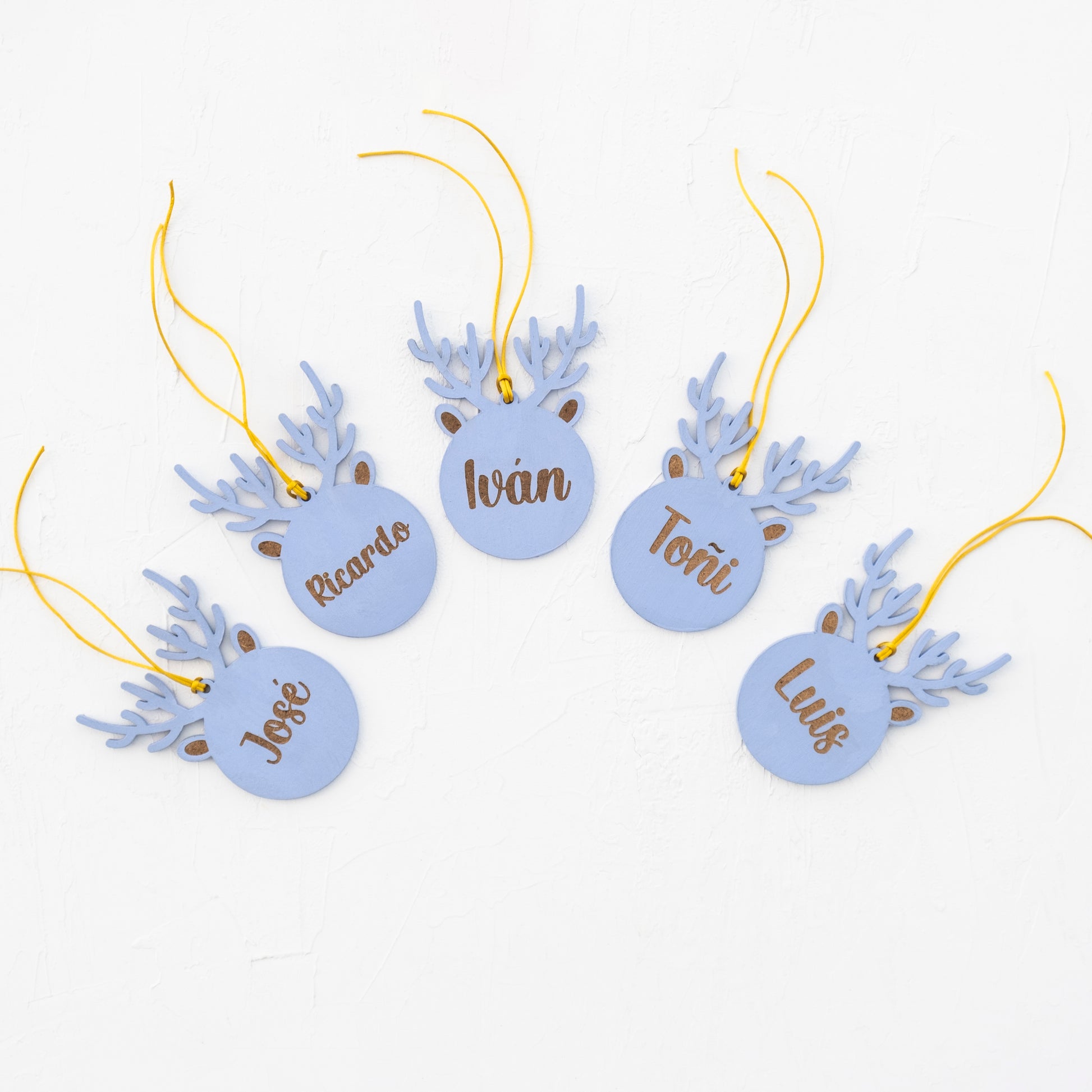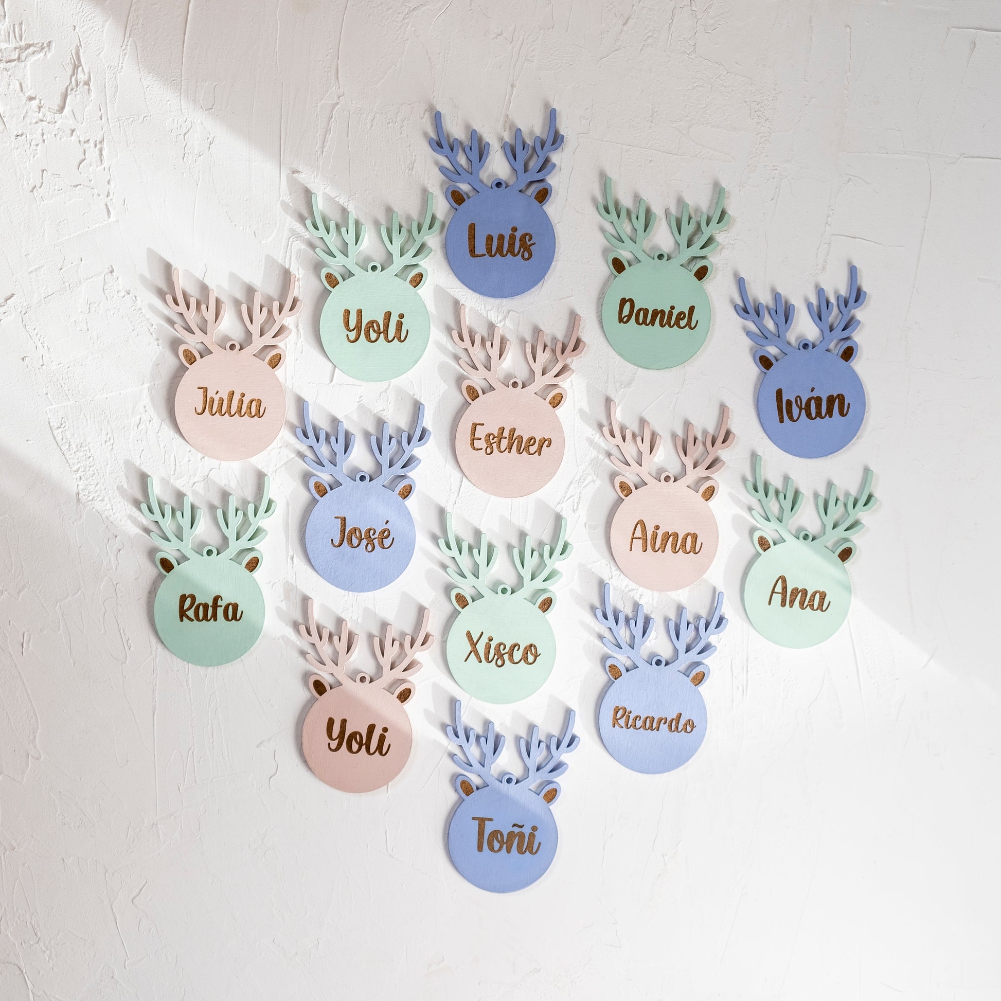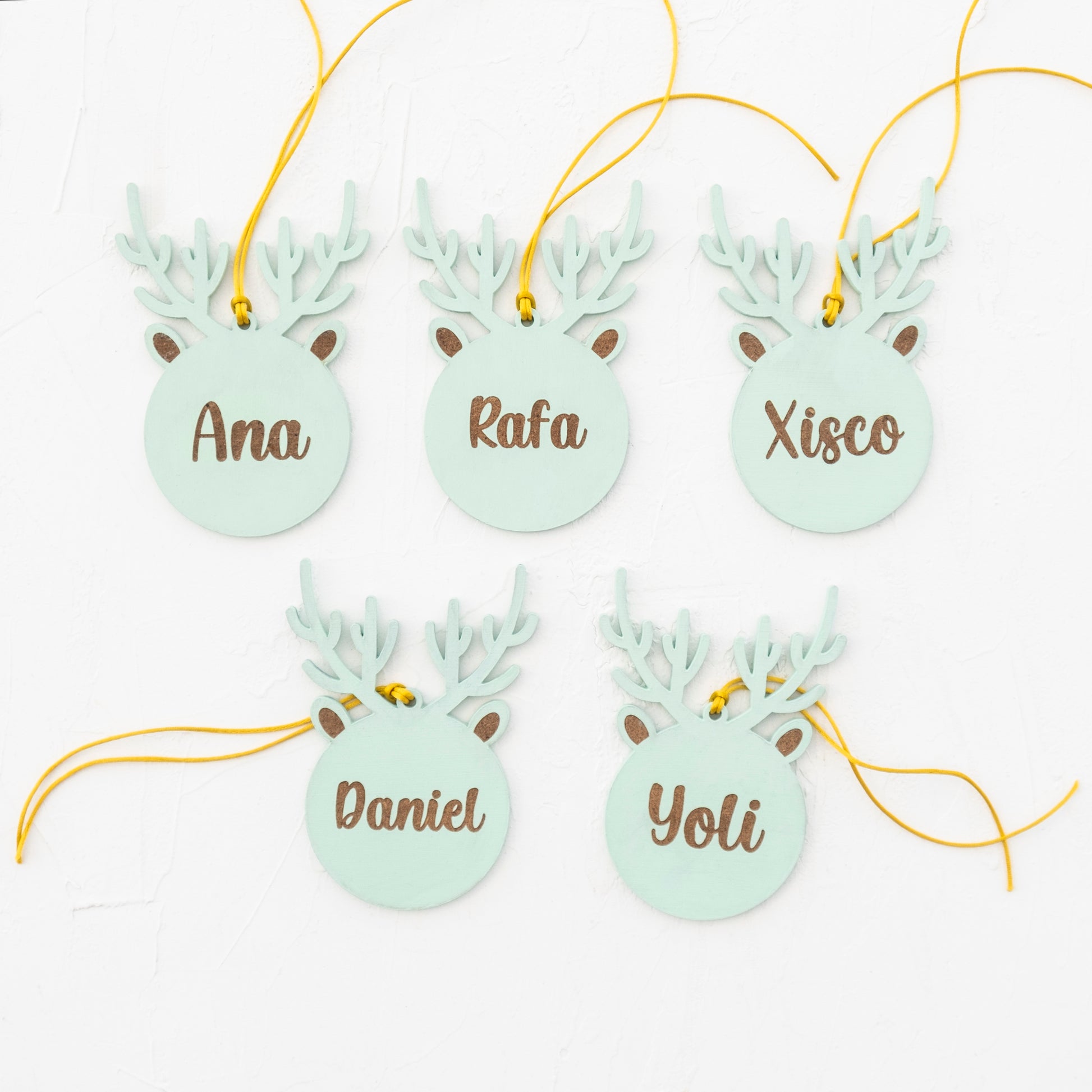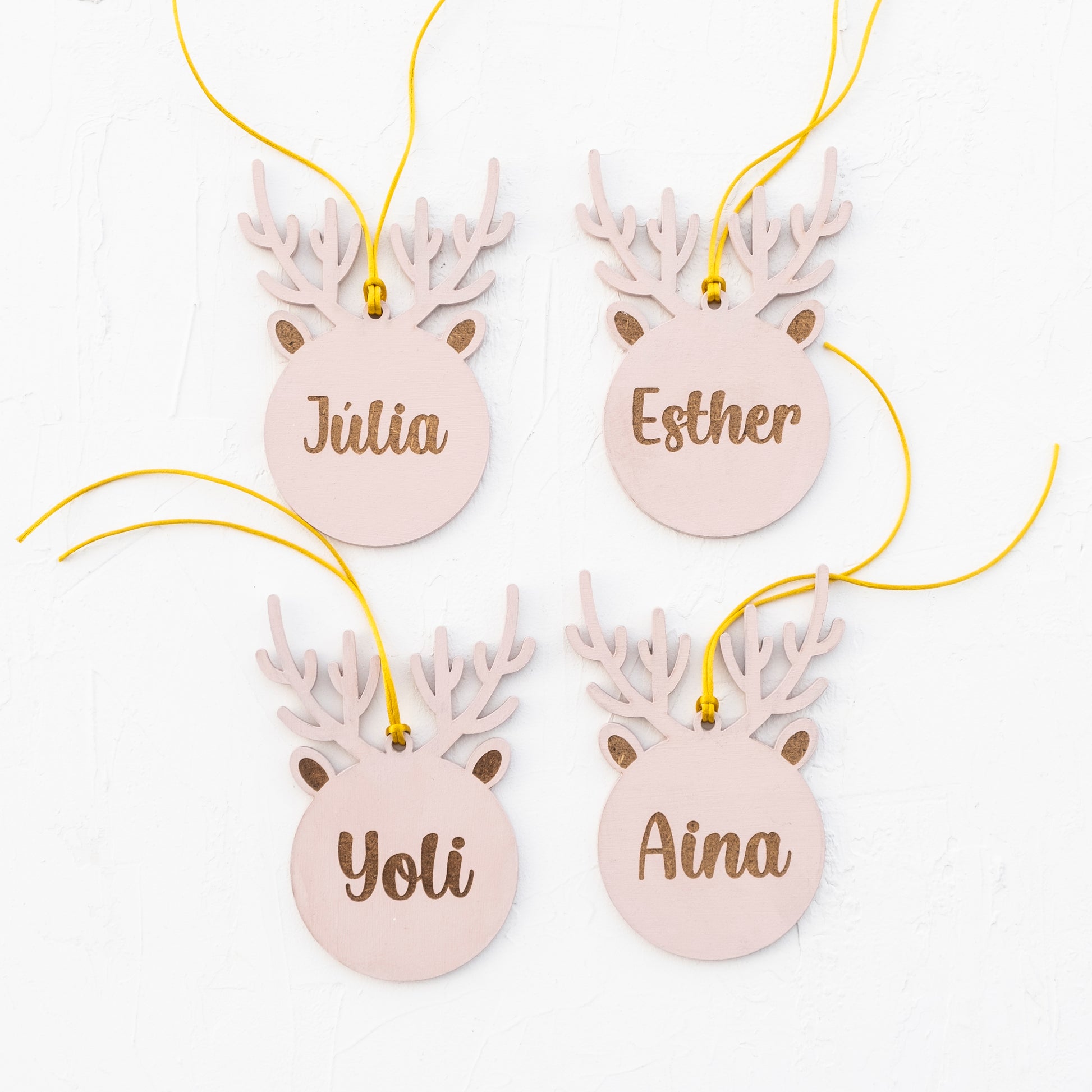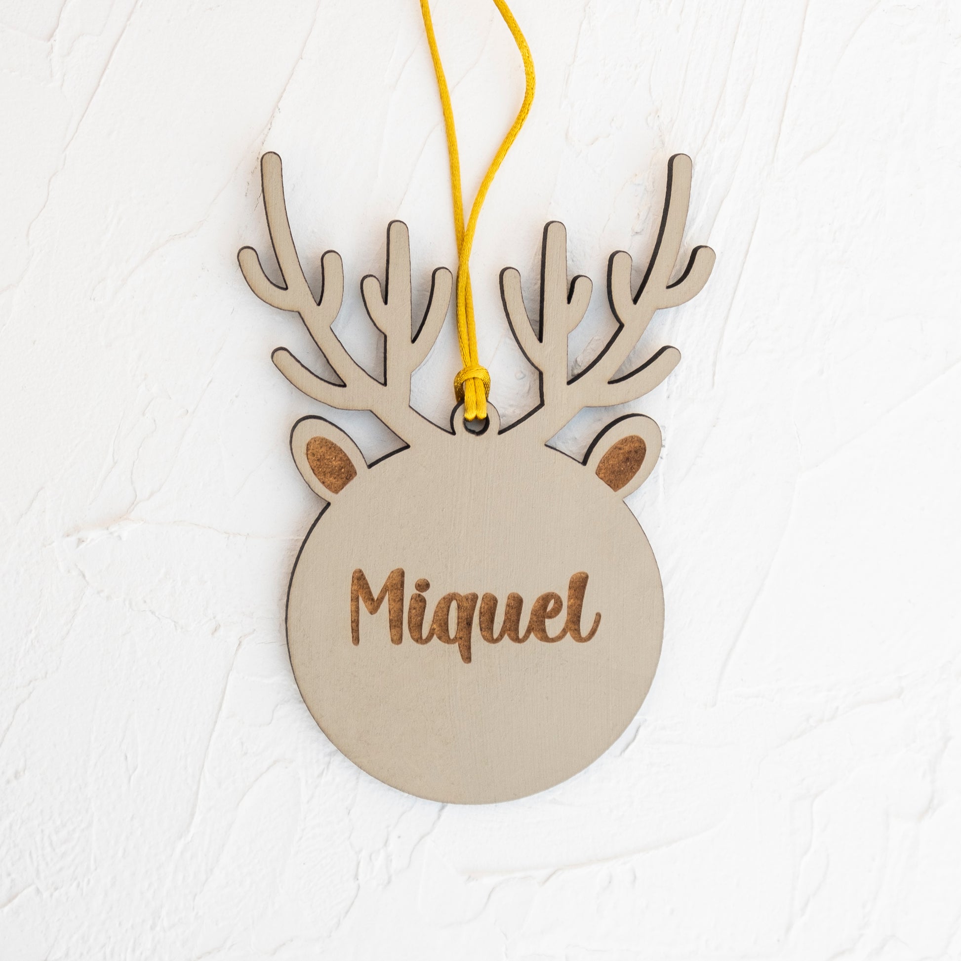 Diseño único: Adorable reno con orejitas y cuernos y el nombre grabado en el centro