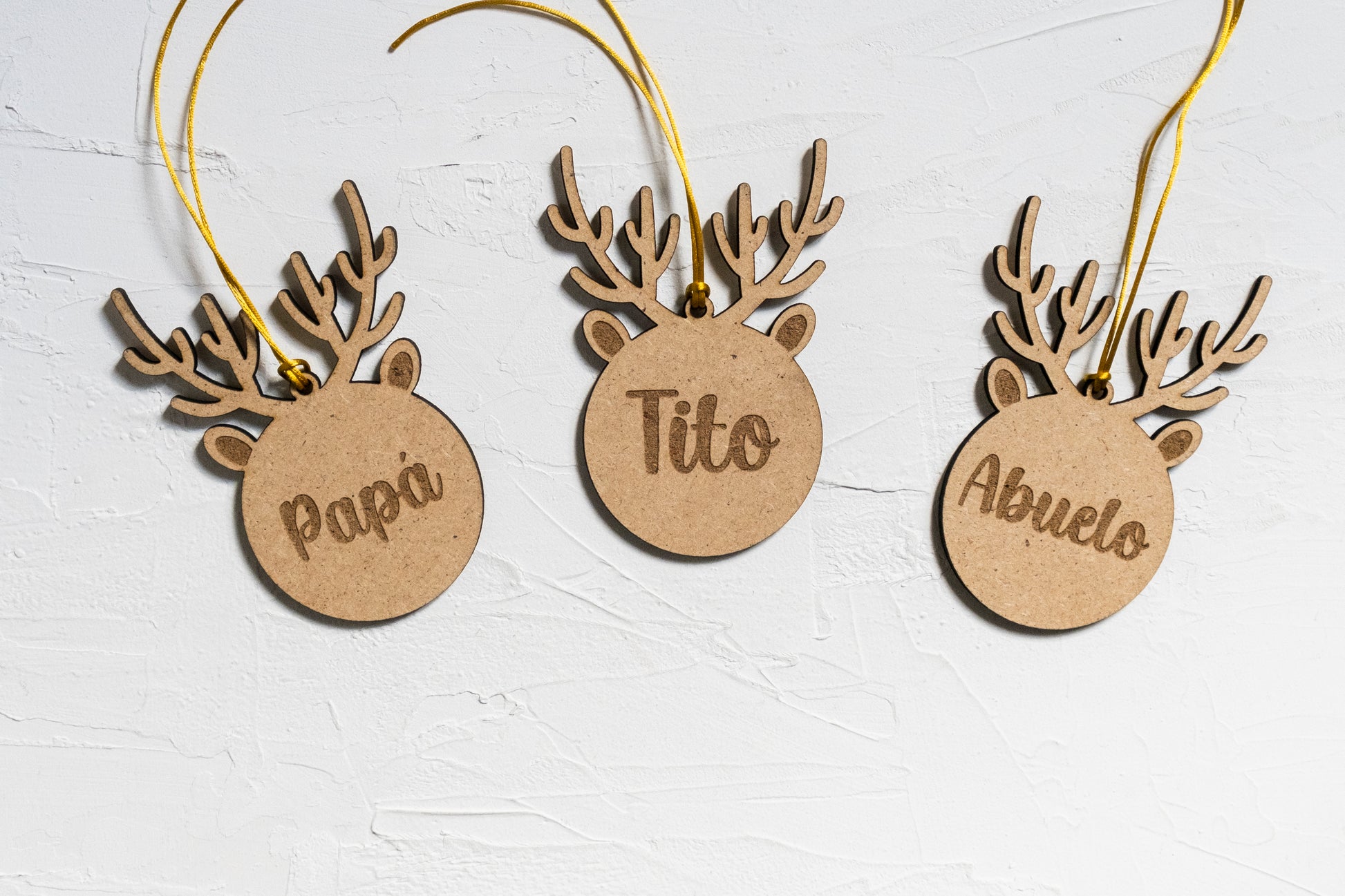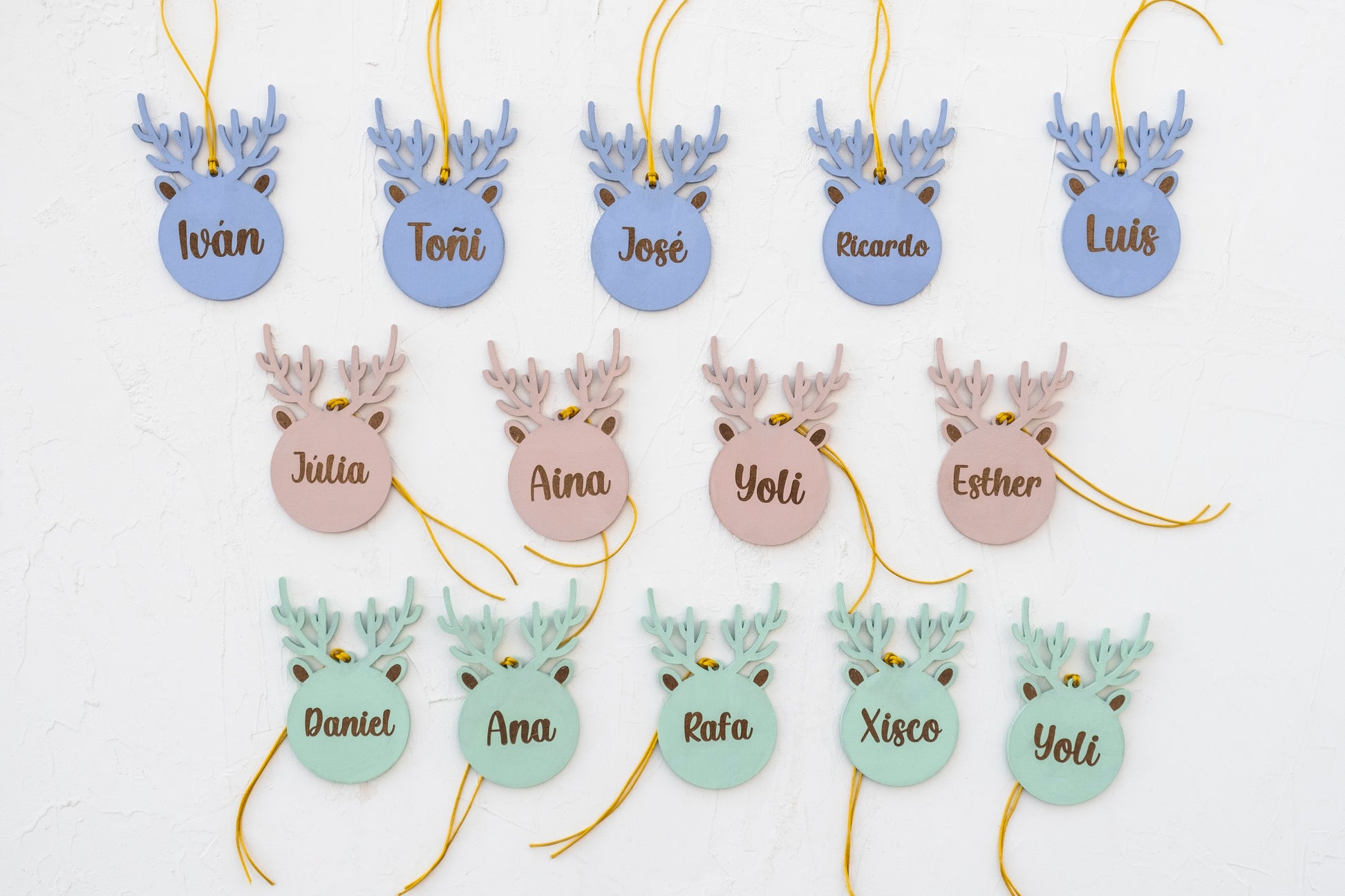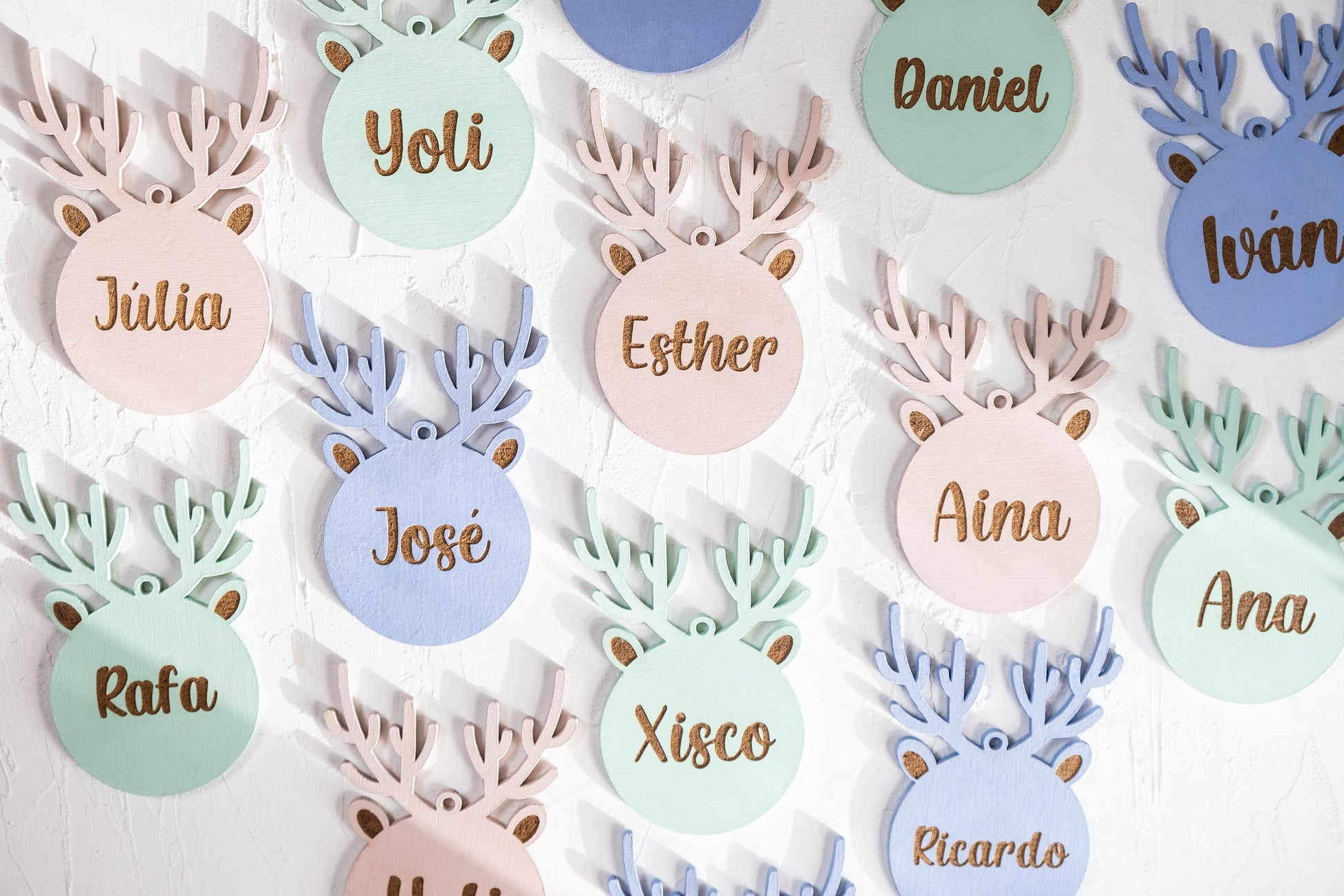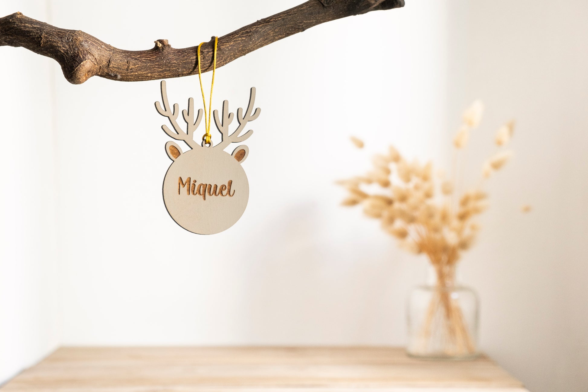 Nuestra bola de Navidad en forma de reno es ese detalle que transforma tu árbol en algo único. Su forma circular se corona con unos cuernos de reno que le dan ese toque encantador y navideño. En el centro, grabamos el nombre que tú elijas, convirtiéndola en un recuerdo para siempre, es taaan adorable!!