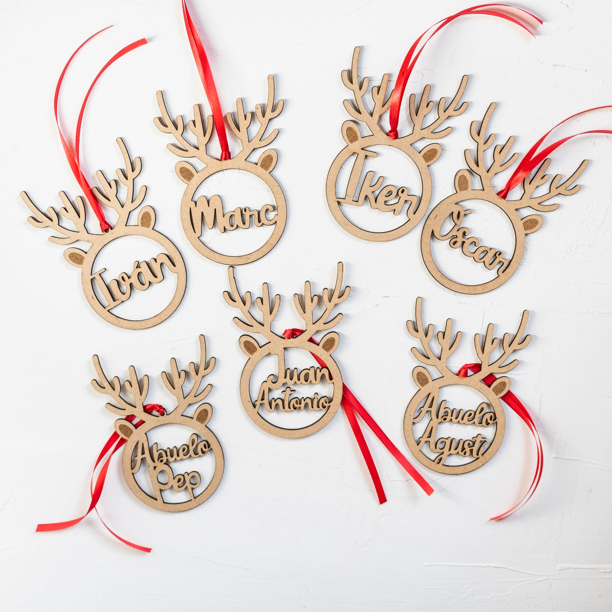La versión grande y troquelada de nuestro mítico reno navideño. Marca la diferencia personalizando estos aros con cuernos de reno y el nombre en su interior, aportando el espíritu navideño y dejando entre ver el árbol.