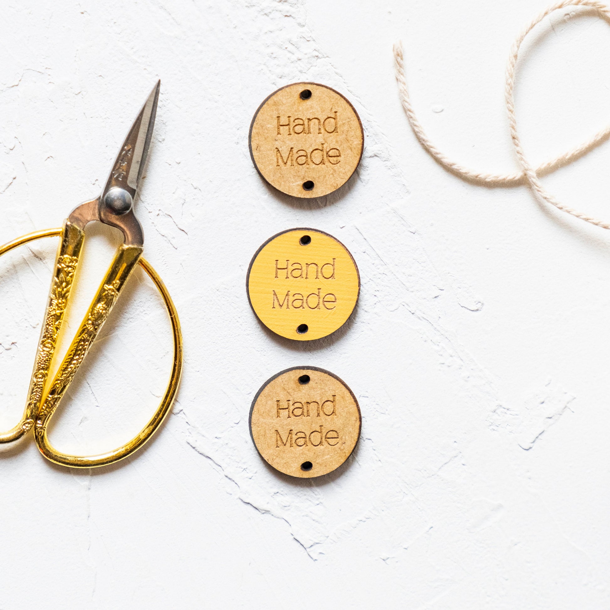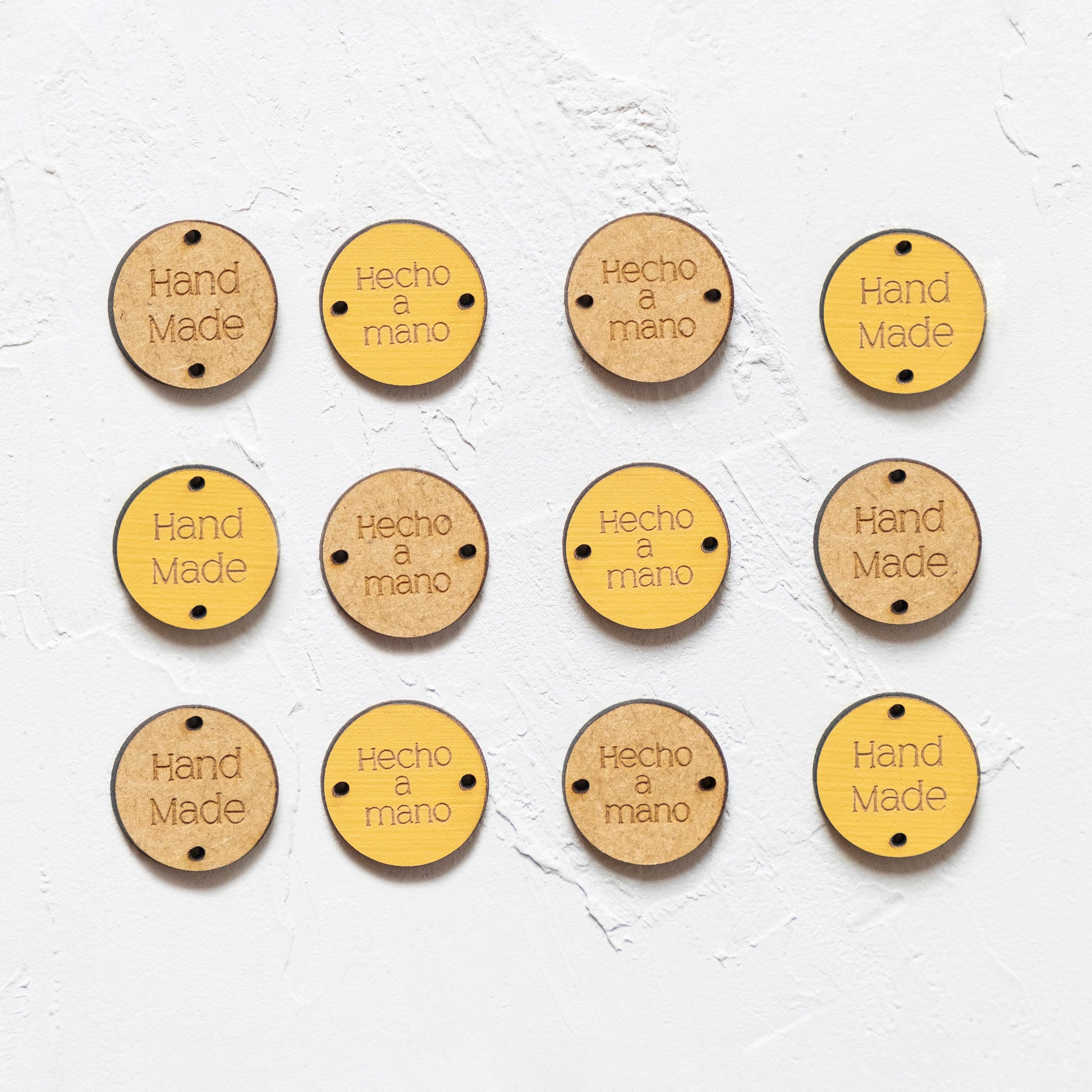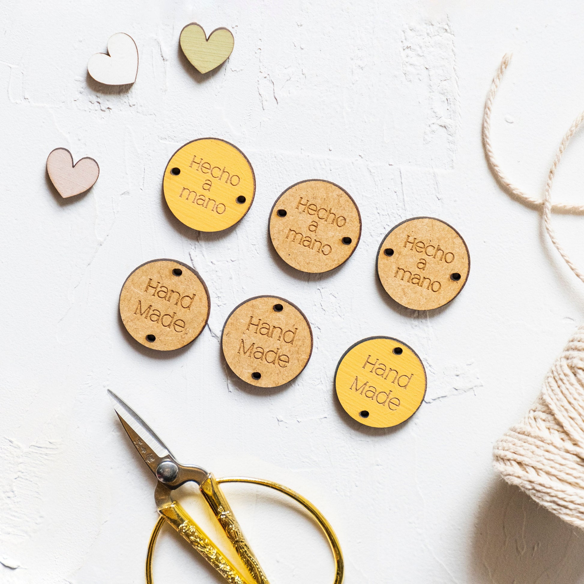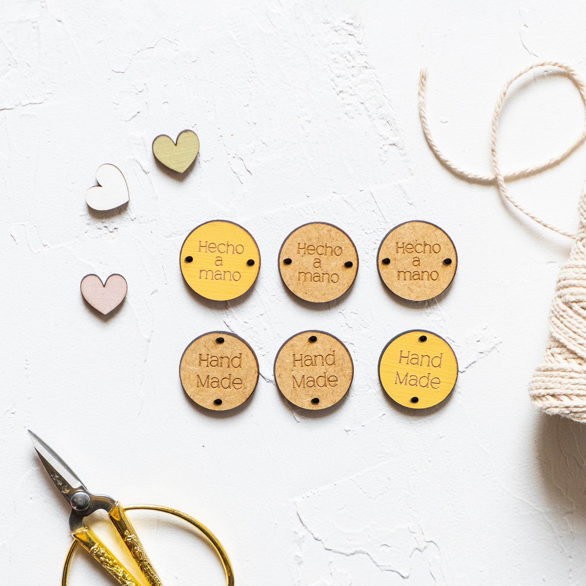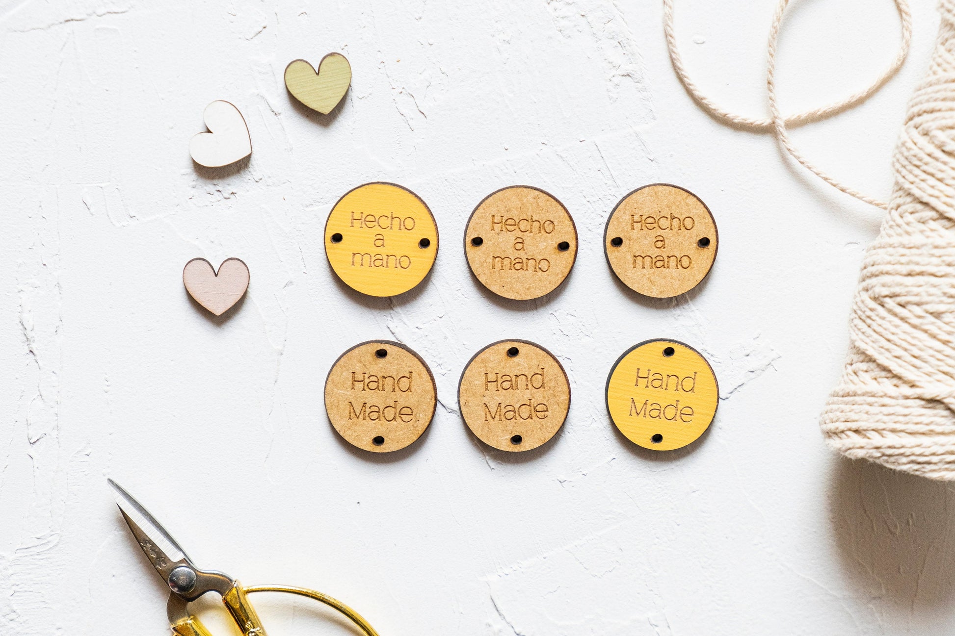Diseño único: Etiquetas con texto "Hecho a mano" o "Hand Made"